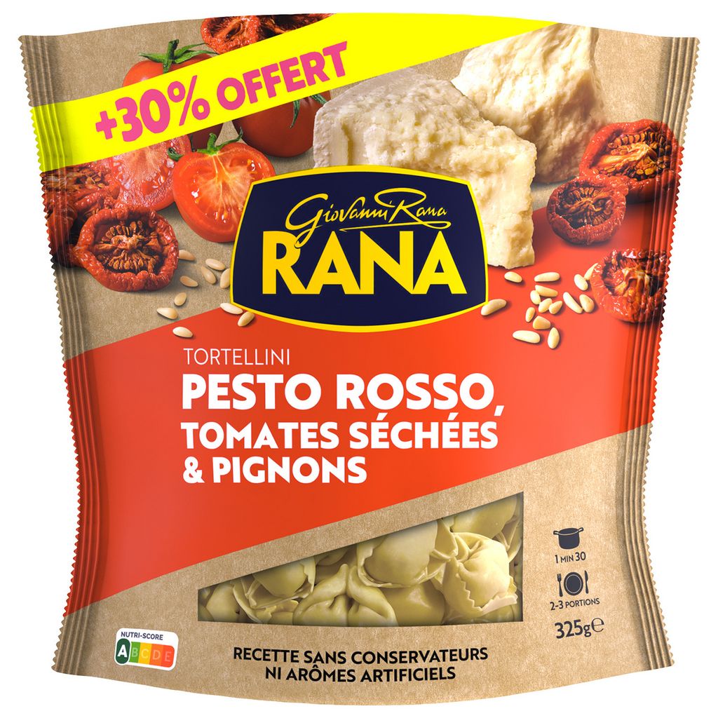Ingrédients : Farce 53% : pesto de tomates 44% (tomates en morceaux 38%, huile d'olive extra vierge, FROMAGE au LAIT de brebis 11%, NOIX DE CAJOU, basilic, tomates séchées 4%, pignons de pin 3.4%, huile de tournesol, ail, sel), ricotta (sérum de LAIT, LAIT, sel), fibres végétales (maïs et pommes de terre), chapelure (farine de BLÉ tendre, eau, sel, levure), concentré de tomates 7%, sérum de LAIT en poudre, FROMAGE mozzarella, LACTOSE, amidons, sel, arômes naturels (contiennent LAIT, BLÉ).Pâte 47% : farine de BLÉ tendre, OEUFS 30%, semoule de BLÉ dur.Peut contenir des FRUITS à COQUE, POISSONS, CRUSTACÉS, MOLLUSQUES, MOUTARDE, SOJA ET CÉLERI.