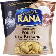 Ingrédients : Farce 53% : viande de poulet 20%, ricotta (sérum de LAIT, LAIT, sel), FROMAGE mozzarella 16%, lard fumé 13% (viande de porc, sel), chapelure (farine de blé tendre, eau, sel, levure), CREME, BEURRE, fibres végétales, huile de tournesol, arômes naturels (contiennent LAIT, BLE et ORGE), sérum de LAIT en poudre, amidon, sel, lait écrémé en poudre, LACTOSE, ail, poivre noir.Pâte 47% : farine de BLE tendre, OEUFS 30%, semoule de BLE dur.