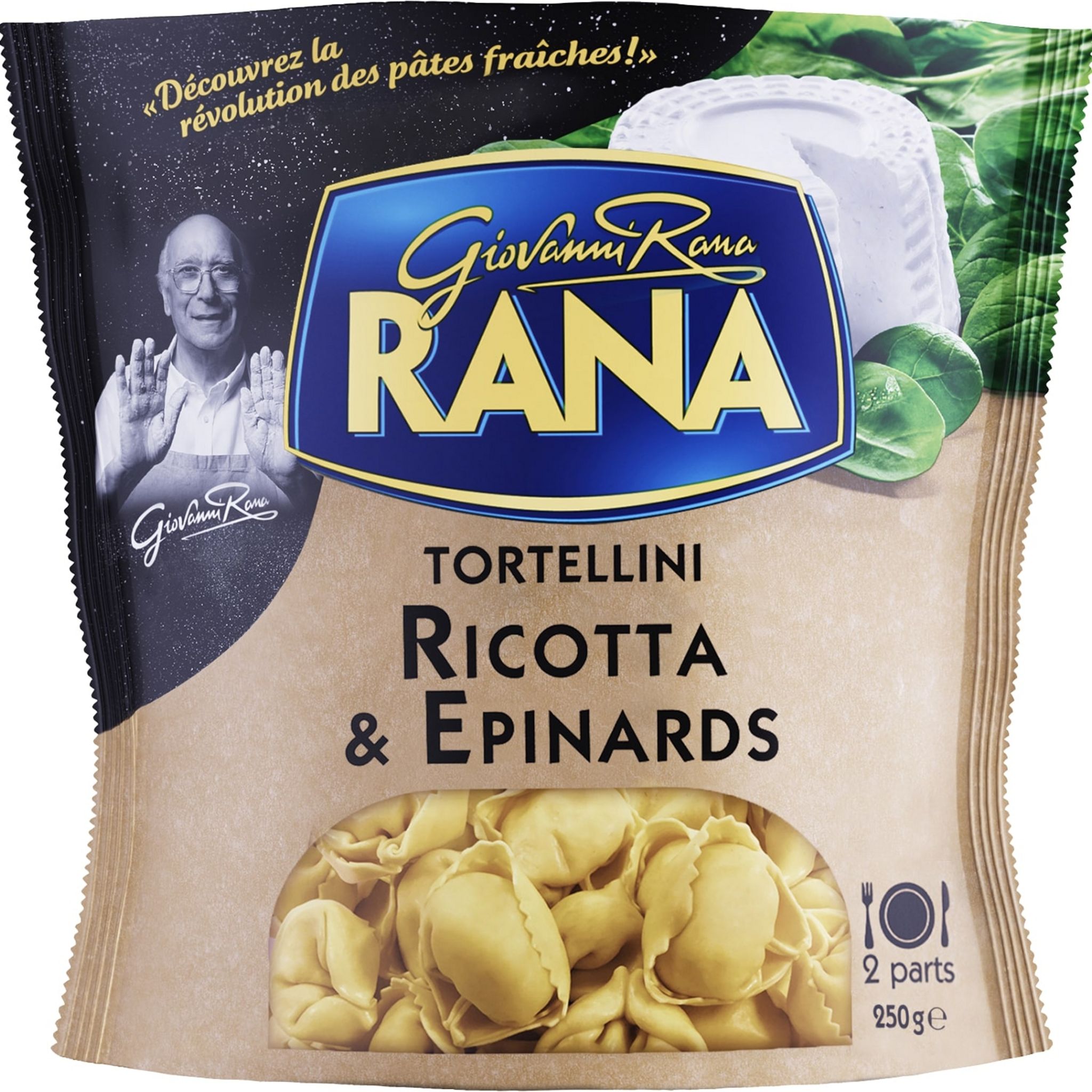 Ingrédients : Farce 53%: ricotta 35% (sérum de LAIT, LAIT, CRÈME, sel), épinards 20%, fibres végétales, huile de tournesol, chapelure (farine de BLÉ tendre, eau, sel, levure), sérum de LAIT en poudre, amidons, FROMAGE mascarpone, arômes naturels (contiennent LAIT, BLÉ), sel, flocons de pomme de terre, ail, noix de muscade.Pâte 47%: farine de BLÉ tendre, ŒUFS 30%, semoule de BLÉ dur.