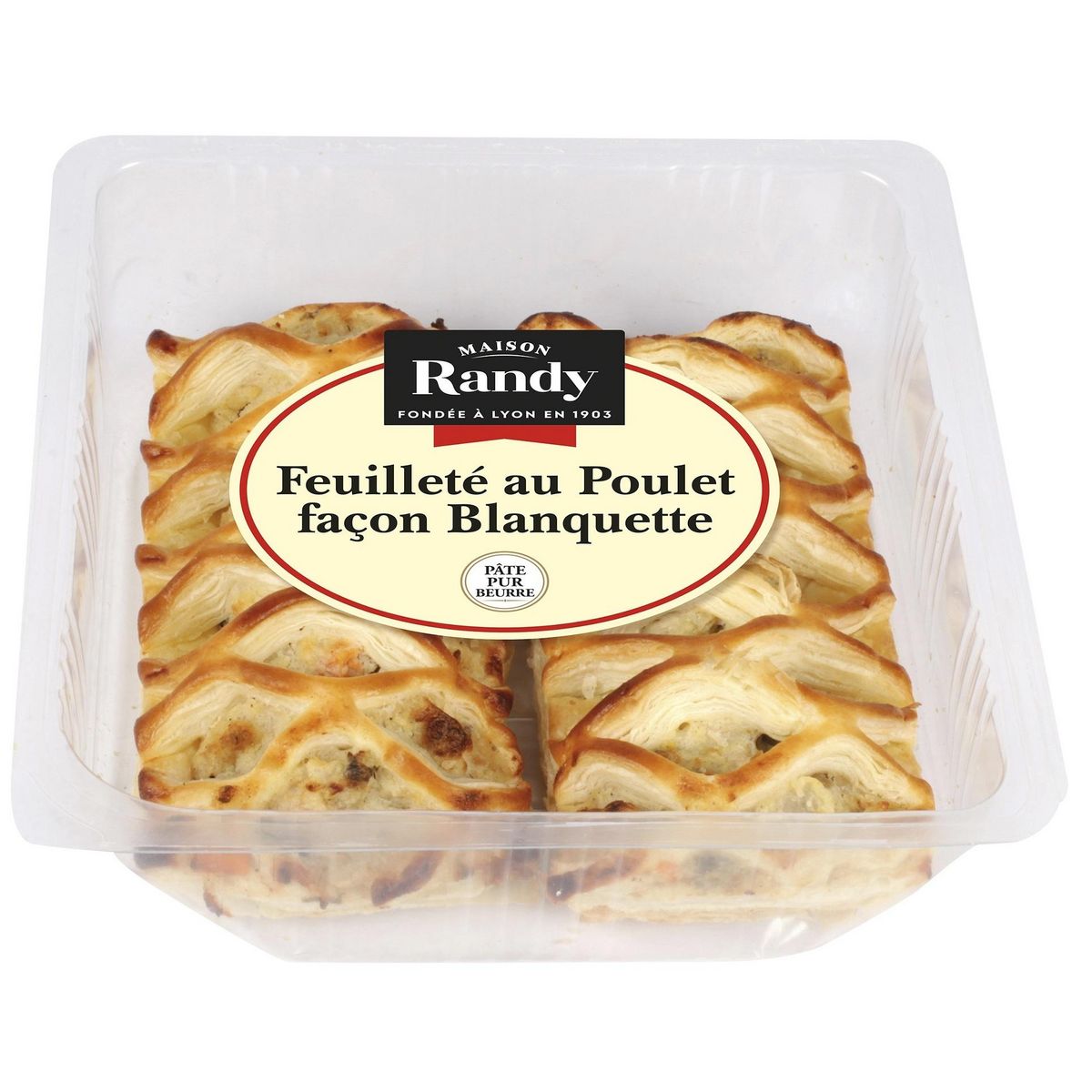 Feuilleté au poulet traité en salaison cuit rôti et aux champignons