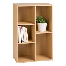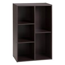 Rangement avec une structure en panneaux de particules 12 mm, recouverts de papier décor. Fond MDF recouvert de papier décor. Coloris : wengué et érable. Meuble démonté. 3 étagères.