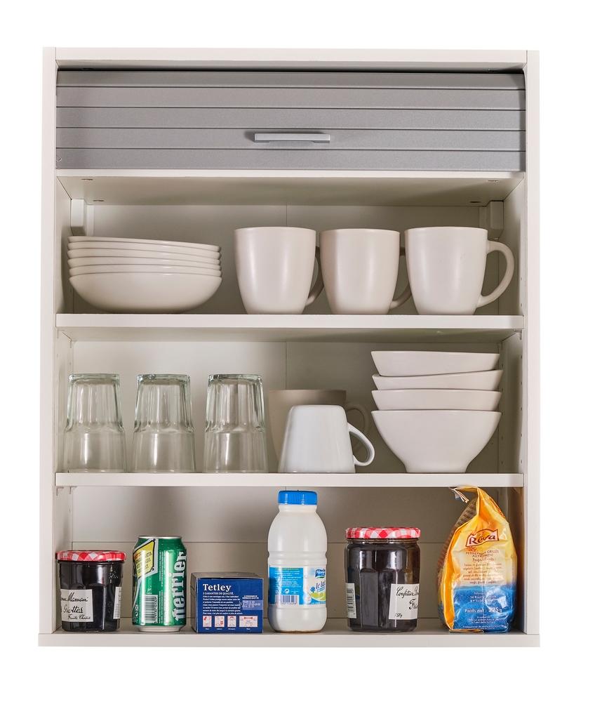 En savoir +Le rangement cuisine Cooking est un meuble pratique à suspendre ou à poser muni de 2 tablettes réglables en hauteur et fermé par un rideau coulissant. Ce meuble de cuisine, fabriqué en France, a une structure blanc et un rideau alu pour un look plus design.