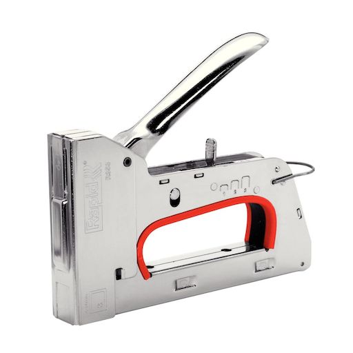 Rapid 20511250 Agrafeuse manuelle PRO R353E 20511250 de Rapid.Convient pour les tissus lourds, toile, cuir, papier, etc. Réglage de puissance 3 positions breveté, développé avec une physiothérapeute, pour soulager les muscles de l'avant bras. Réduit jusqu'à 40% votre effort pour les travaux requiera