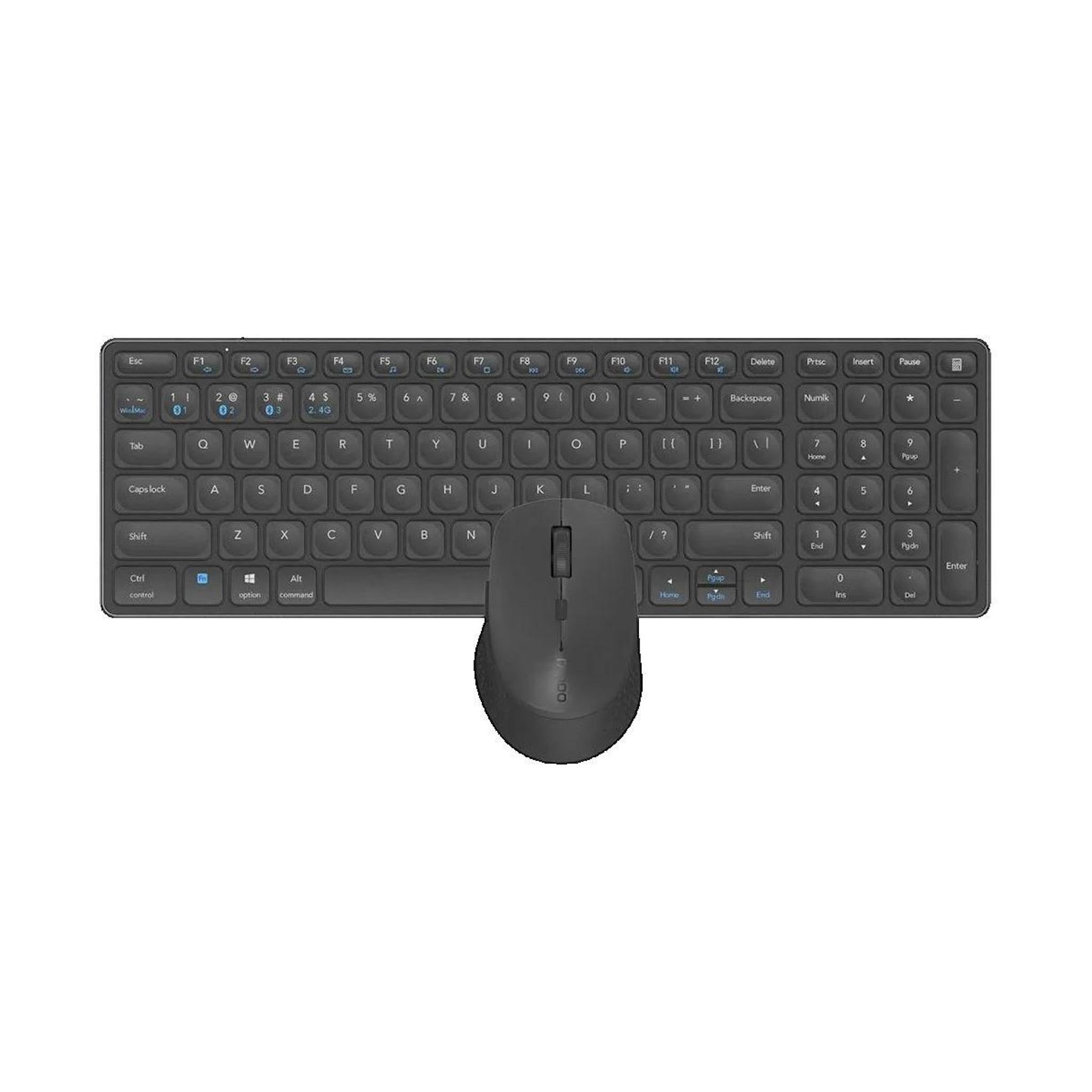 L'ensemble Rapoo 9700M comprend un clavier moderne et fin en aluminium anodisé ainsi qu'une souris ergonomique en coloris noir élégant. Ce kit offre une connectivité sans fil via Bluetooth (versions 3.0, 4.0, 5.0) et un récepteur USB 2,4 GHz, compatible avec Windows, Mac, Android, iOS et ChromeOS. L