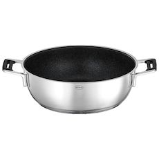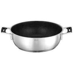Découvrez la poêle Rösle Silence Pro de 28 cm, fabriquée en acier inoxydable 18/10 de haute qualité. Elle est dotée d'un revêtement antiadhésif ProResist compatible avec les ustensiles en acier inoxydable pour une cuisson sans accroche. Sa bordure haute est idéale pour préparer sauces et plats mijotés, avec des poignées latérales permettant un service direct à table. Compatible avec toutes sources de chaleur : électrique, céramique, gaz, induction et four, elle résiste jusqu'à 200 °C. Son volume est de 4,5 litres pour une hauteur de 9,5 cm et un poids de 1 kg. Entretien facile, elle est compatible avec le lave-vaisselle. Un choix d'excellence pour une cuisine élégante et efficace.