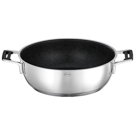 Découvrez la poêle Rösle Silence Pro de 28 cm, fabriquée en acier inoxydable 18/10 de haute qualité. Elle est dotée d'un revêtement antiadhésif ProResist compatible avec les ustensiles en acier inoxydable pour une cuisson sans accroche. Sa bordure haute est idéale pour préparer sauces et plats mijot