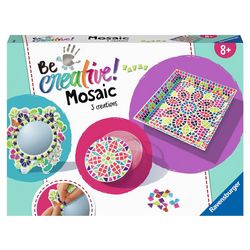 - TROIS OBJETS EN MOSAIQUE Ce coffret complet permet de réaliser 3 très beaux objets en mosaïque : 1 plateau de rangement, 1 boite à bijoux et 1 miroir.