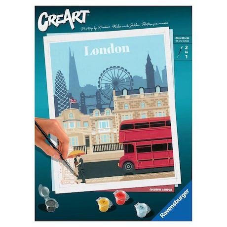 Profitez d'un moment de détente et de relaxation avec la peinture par numéros ! C'est facile, beau et agréable de réaliser soi-même son chef d'?uvre ! Parmi les nombreux visuels grands formats adulte à peindre et à accrocher, ce visuel unique et coloré de Londres saura ravir les passionnés et compléter leurs collections ! Retrouvez d'autres villes dont Stockholm et Sydney. Fabriqué en Allemagne. A partir de 12 ans. Ce produit est composé de matériaux issus de forêts bien gérées certifiées FSC®, de matériaux recyclés et de matériaux issus d'autres sources contrôlées (FSC-C111262).