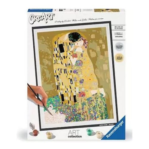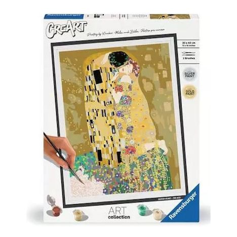 CreArt, de la peinture par numéros pour adulte - Format 30x40 cm Profitez d'un moment de détente et de relaxation avec la peinture par numéros ! C'est facile, beau et agréable de réaliser soi-même son chef d'?uvre ! Découvrez ce visuel tendance qui saura ravir les passionnés et compléter leurs collections ! Idéal pour décorer votre intérieur. Avec ce tableau Le baiser , célèbre de Klimt, CreArt met à l'honneur l'artiste iconique. Devenez vous-aussi un artiste en peignant l'?uvre d'art de Klimt. Avertissements Ne convient pas aux enfants de moins de 7 ans. À utiliser sous la surveillance d'un adulte. Lire les instructions avant utilisation, s'y conformer et les garder comme références. Les peintures contiennent masse de réaction de 5-chloro-2-méthyl-2H-isothiazol-3-one et de 2-méthyl-2H-isothiazol-3-one (3:1). Peut produire une réaction allergique