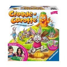C'est parti pour une course de lapins complètement folle ! Ton objectif : la succulente carotte au sommet de la colline. Mais attention, le chemin qui mène jusqu'à elle est plein de surprises : de temps en temps, des trous s'ouvrent et boum, les lapins tombent dedans, ou une taupe sans-gêne les pousse sur le côté. Un pont-levis et une clôture peuvent aussi gêner le passage. Quel petit lapin s'en sortira le mieux avec les trous et les obstacles et atteindra le premier la carotte ? En exclusivité, retrouve un jeu de 32 cartes Mon 1er jeu de cartes Croque Carotte pour encore plus de rires en famille ! Contenu: 1 colline avec de trous mobiles, une taupe coquine, un pont-levis, une clôture et une carotte à faire tourner, 16 pions lapins, 48 cartes, 1 jeu de 7 familles.