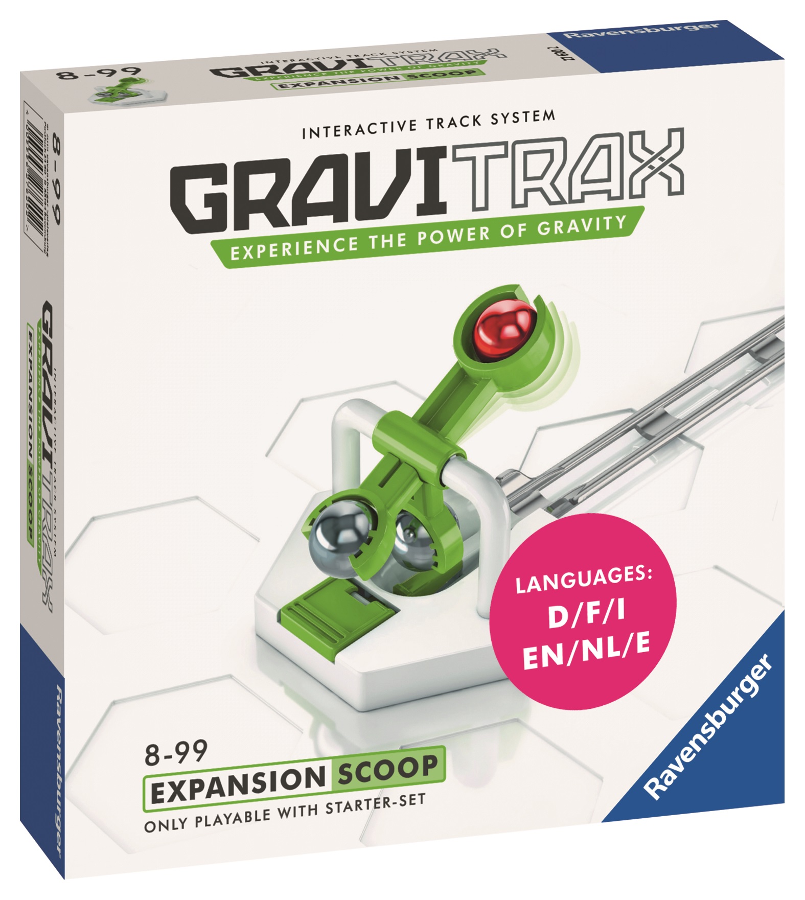 Renverse ta bille ! Avec le scoop, donne une nouvelle dimension à ton circuit et parcours encore plus de distance avec tes billes. Combine le scoop avec le Starter-Set GraviTrax® et ajoute une dose d'action supplémentaire à tes parcours. Sur quelle distance ta bille roulera-t-elle sur le circuit grâ