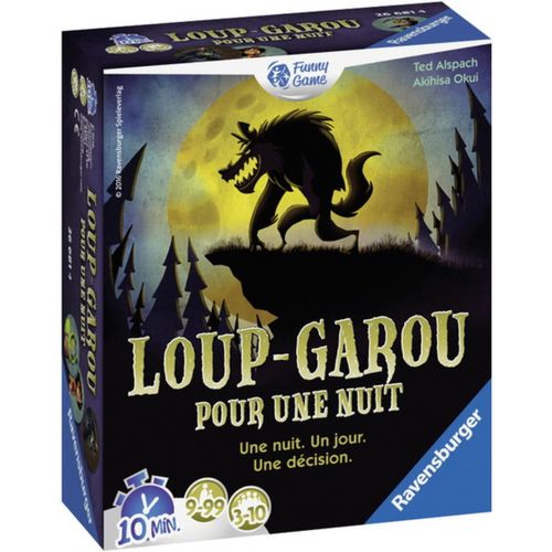 Une nuit, un jour, une décision ! Glissez-vous dans la peau de l'un des douze rôles différents et soyez à l'affut : Qui est un redoutable Loup-Garou ? Qui est un inoffensif villageois ? Vous n'aurez qu'une seule chance de le découvrir! En bonus : L'application gratuite remplace le maître du jeu !. La boite contient 16 cartes personnage, 16 jetons et 1 règle du jeu. Age : 9 ans et plus. De 3 à 10 joueurs. Durée d'une partie : environ 10 min