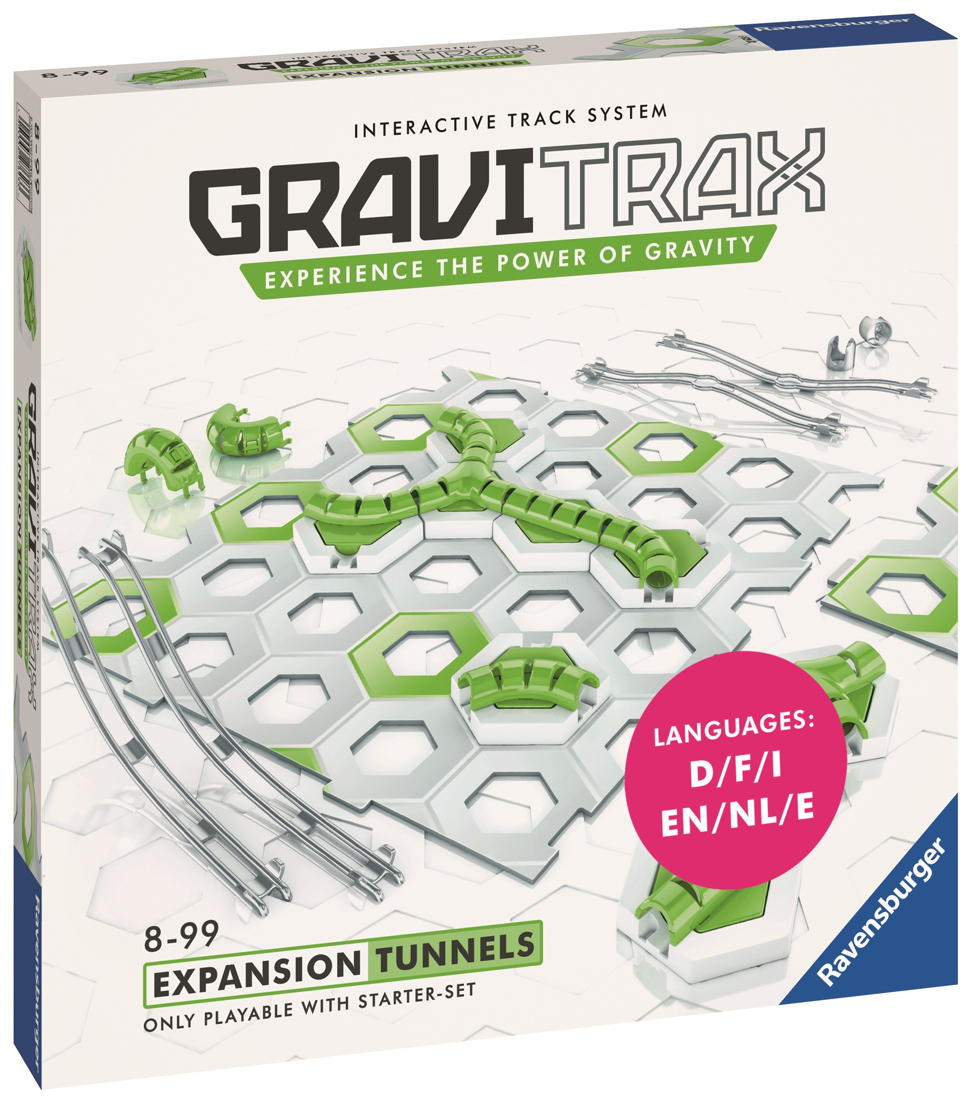 Ajoute du suspense à tes circuits à bille avec ce set d'extension GraviTrax. Combine les tunnels, les rails et les grilles pour créer un circuit avec encore plus de combinaisons !