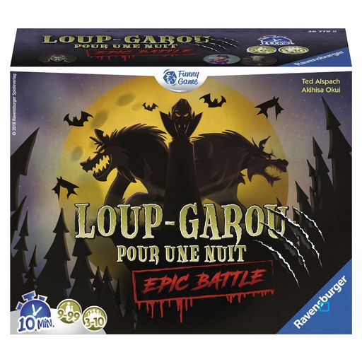 Si vous aimez manipuler vos adversaires et détourner l'attention sur un autre sujet que votre identité, alors ce jeu est fait pour vous ! Le soleil vient de se coucher. Vampires et Loups-garou chassent dans le village endormi, mais très vite tout dérape ! Heureusement certains villageois sont dotés de capacités hors du commun ! Glissez dans la peau de l'un des 3 personnages et soyez à l'affût ! Mais qui est un honnête Villageois et qui est un terrible Loup Garou... ou un Vampire aux dents longues ? À toi de le découvrir ! Epic Battle pack regroupe les 30 meilleurs personnages de Loup Garou pour Une Nuit, Loup Garou pour un Crépuscule et Vampire pour Une Nuit !Vous êtes désormais prêt pour un affrontement de bluff entre créatures mystiques ! Également adapté aux petits groupes, pas d'élimination, le Maître du jeu joue aussi. En bonus : l'appli gratuite remplace le Maître du jeu ! Seras- tu meilleur que tes adversaires ?