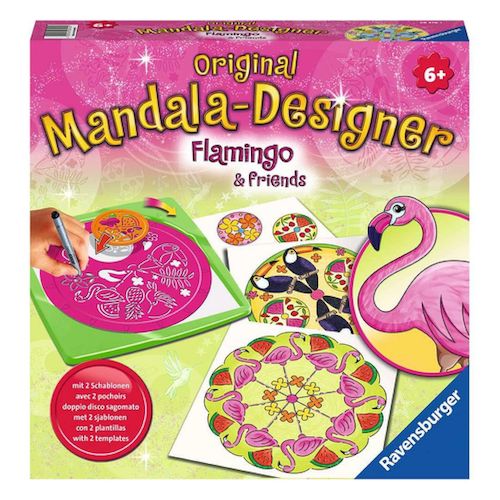 Le mandala consiste à réaliser un dessin à l'aide d'un pochoir rond mobile qui tourne afin de reproduire sur une feuille de papier des motifs que l'on peut répéter et combiner à l'infini. Pour finaliser son mandala, il suffit de le colorier. Mandala Designer, c'est toute une collection de Mandala. Chaque produit inclut un cadre dans lequel glisser la feuille (21 x 21 cm), 2 pochoirs (1 grand et 1 petit), 1 feutre, 3 crayons de couleur et des feuilles blanches. Cette référence Flamingo et friends permet de reproduire des flamants roses, des toucans, des ananas, des fleurs, .. tout un univers de dessins tropicaux ! Ce produit est composé de matériaux issus de forêts bien gérées certifiées FSC®, de matériaux recyclés et de matériaux issus d'autres sources contrôlées (FSC-C111262). A partir de 6 ans.