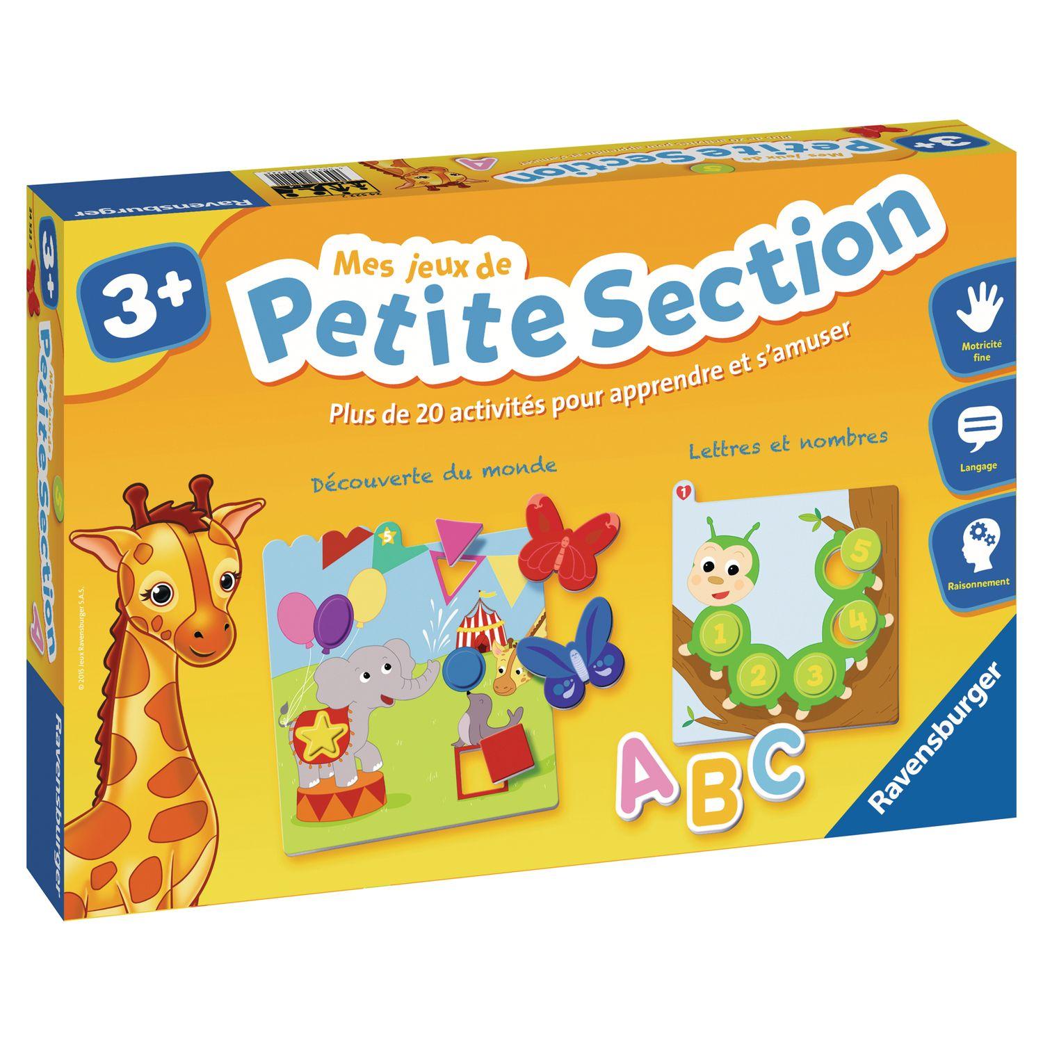 Mes jeux de petite section de Ravensburger est un coffret de jeu à visée éducatif qui rassemble de nombreuses activités sur des thèmes très variées abordant l'apprentissage des lettres, des chiffres, des couleurs, le corps humain, le monde végétal et bien d'autres à découvrir !