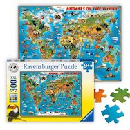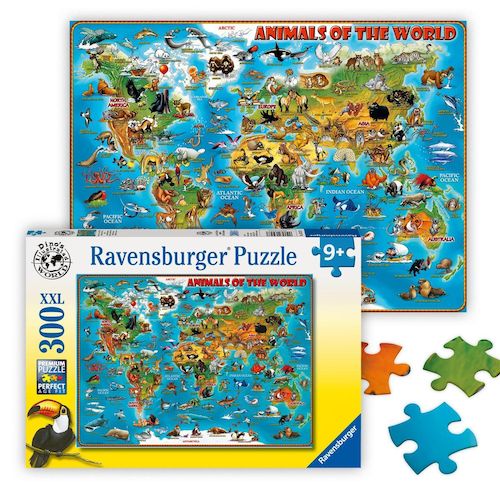 Les puzzles 300 pièces XXL Ravensburger permettent aux enfants dès 9 ans de plonger dans un monde coloré sur leurs thèmes préférés. Ils pourront partir à la découverte du monde, admirer leurs animaux préférés dans les moindres détails ou encore voyager dans l'espace pièce après pièce. Un puzzle fascinant qui plonge votre enfant dans une aventure à travers le monde ! Découvrez une carte du monde unique, peuplée d'animaux représentant chaque continent. Des pandas en Asie, des kangourous en Australie, des lions en Afrique et bien plus encore, chaque région regorge de créatures incroyables. Cette carte animalière permet de voyager tout en apprenant. 1 puzzle de 300 pièces XXL. Dimensions du puzzle : 49 x 36 cm. Une qualité de fabrication impeccable : matériau extra-épais et durable adapté aux mains des jeunes enfants et résistant aux nombreuses manipulations pour permettre de s'amuser encore plus longtemps avec son puzzle !. Fabriqué en Europe, ce puzzle est composé de matériaux issus de forêts bien gérées certifiées FSC , de matériaux recyclés et de matériaux issus d'autres sources contrôlées (FSC -C111262). Une qualité de fabrication impeccable : matériau extra-épais et durable résistant aux nombreuses manipulations pour s'amuser encore plus longtemps!