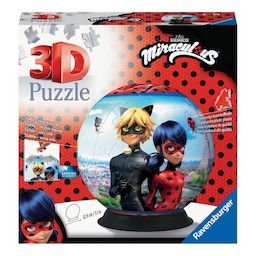 Un puzzle 3D rond aux couleurs de Marinette et Adrien, alias Ladybug et Chat Noir, facile à assembler grâce à ses 72 pièces numérotées. Il suffit de suivre l'ordre des numéros et le sens des flèches indiqués au verso des pièces de puzzle. Toutes les pièces s'emboitent parfaitement grâce à la technol
