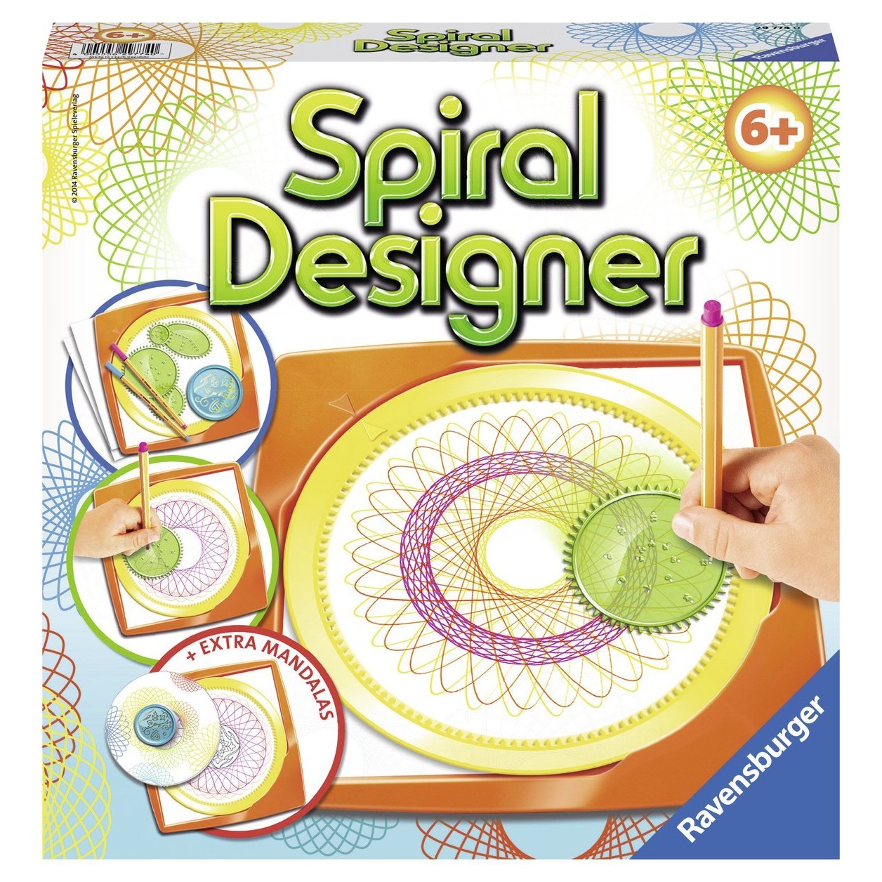 Dessine tes cercles, entrelace tes ellipses et crée d'uniques dessins géométriques avec Spiral-Designer! Il suffit de coincer une feuille de papier entre le pupitre et les pochoirs et c’est parti ! Choisis une des roues crantées et tourne pour obtenir ton motif préféré. Tu peux même ajouter un petit mandala au centre pour lui donner une touche personnelle !
