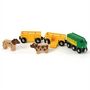 Transporte le cheval et la vache jusqu'aux pâturages avec ce train possédant un wagon pour chaque animal ! La locomotive manuelle les tractera ensuite jusqu'aux prés.