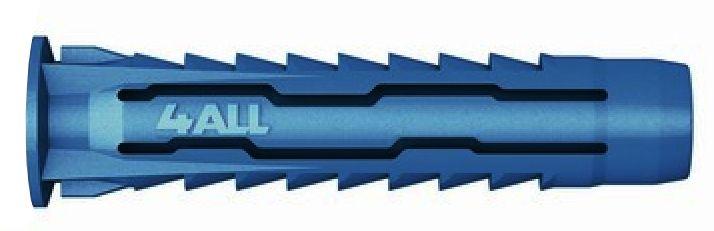 BoÎte de 50 chevilles Ø, 6 x 50 mm - pour vis Ø, 4 / 5 mmGéométrie interne unique pour un guidage stable de la vis. Ailettes anti-rotation qui renforcent la tenue dans une vaste gamme de supports, y compris maçonneries creuses et plaques de plâtre. Tête à nervure pour une tenue élevée. S