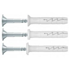 Chevilles FX à collerettes fraisées avec clous-vis acier FX-N-06L080 Ø, 6 x 80 mm pour fixations traversantes spéciales matériaux pleins avec clou fileté prémonté permettant une pose ultra rapide au marteau. Tête du clou-vis renforcée, avec empreinte PZ2. La grande zone de déformation de la cheville garantie l',adaptation aux supports non-homogènes et une tenue supérieure.