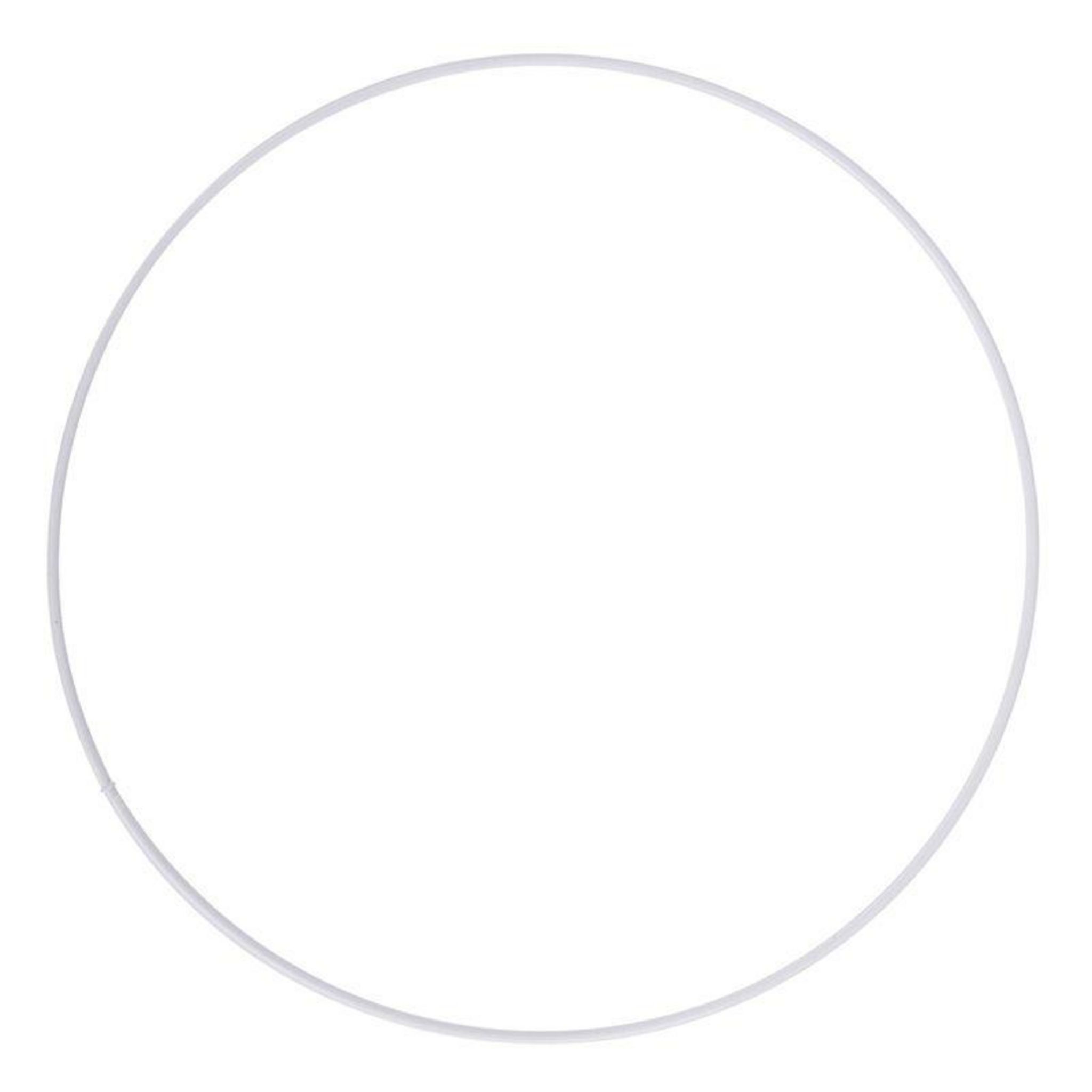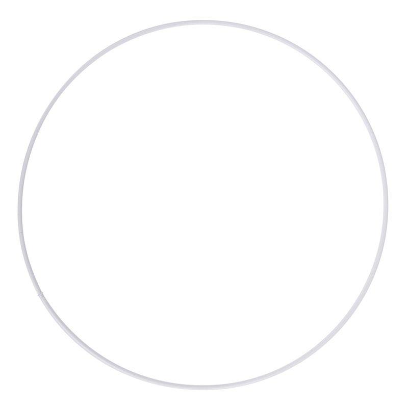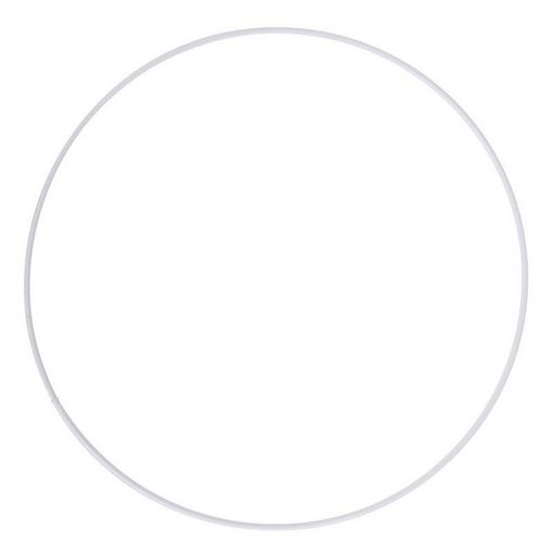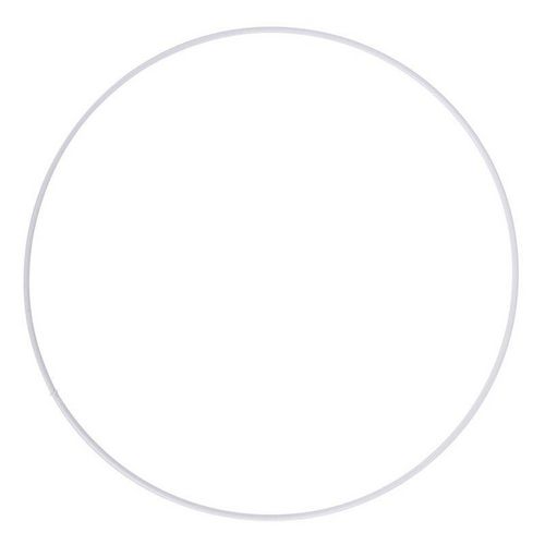 Anneau métallique. Ce cercle nu pour abat-jour est verni en blanc. Cet anneau d'un diamètre de 25 cm peut constituer l'armature supérieure pour fabriquer un abat-jour. Il peut également servir pour concevoir un attrape-rêve.