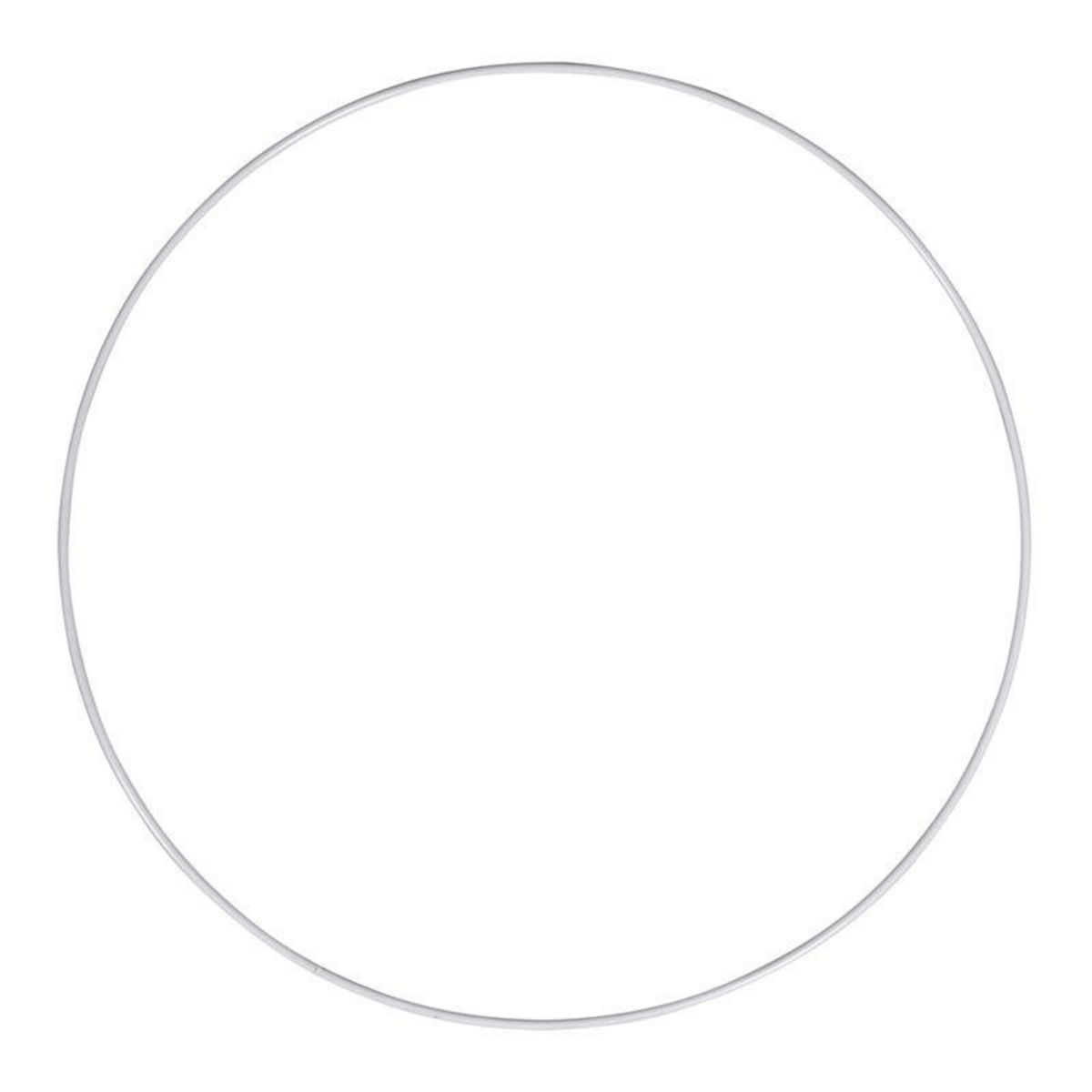 Anneau métallique. Ce cercle nu pour abat-jour est verni en blanc. Cet anneau d'un diamètre de 30 cm peut constituer l'armature supérieure pour fabriquer un abat-jour. Il peut également servir pour concevoir un attrape-rêve.