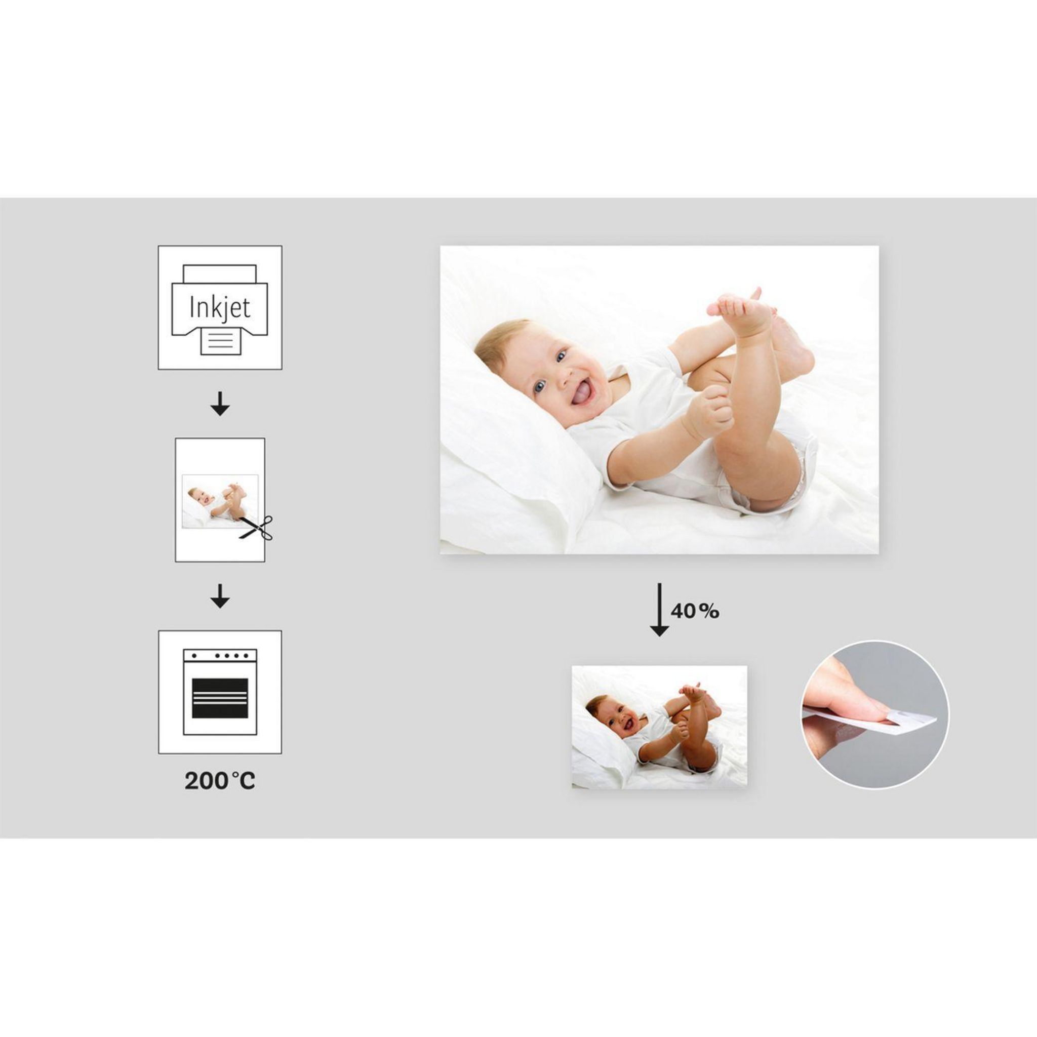 Les 5 feuilles A4 de film plastique rétractable blanc sont parfaites pour une impression avec une imprimante ! Conseils d'application : Imprimer le film, découper le motif et 'faire rétrécir' dans le four. Le motif est réduit, durcit et peut être utilisé pour de nombreux ouvrages d'artisanat : aiman