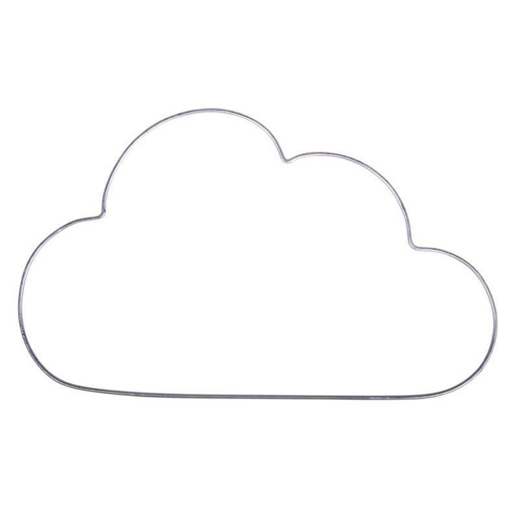 Figure décorative métallique en forme de nuage. Pour décorer et colorer ce fil de fer, vous pouvez enrouler un fil de coton autour. Ce nuage pourra être suspendu ou fixé au mur. Dimensions du nuage 30 x 17,5 cm.