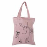 Sac en coton rose licorne 25 x 20 cm