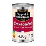 Haricots lingots réhydratés 31 %, eau, viande de porc traitée en salaison et précuite 15 % (viande de porc, eau, sel), saucisses de Toulouse précuites 12 % (viande de porc, eau, sel, épice, boyau naturel), saindoux, couenne de porc, oignons frits (oignons, huile de tournesol et/ou huile de colza), concentré de tomates, sel, plante aromatique, épice, affermissant: chlorure de calcium. Viande de porc origine France.