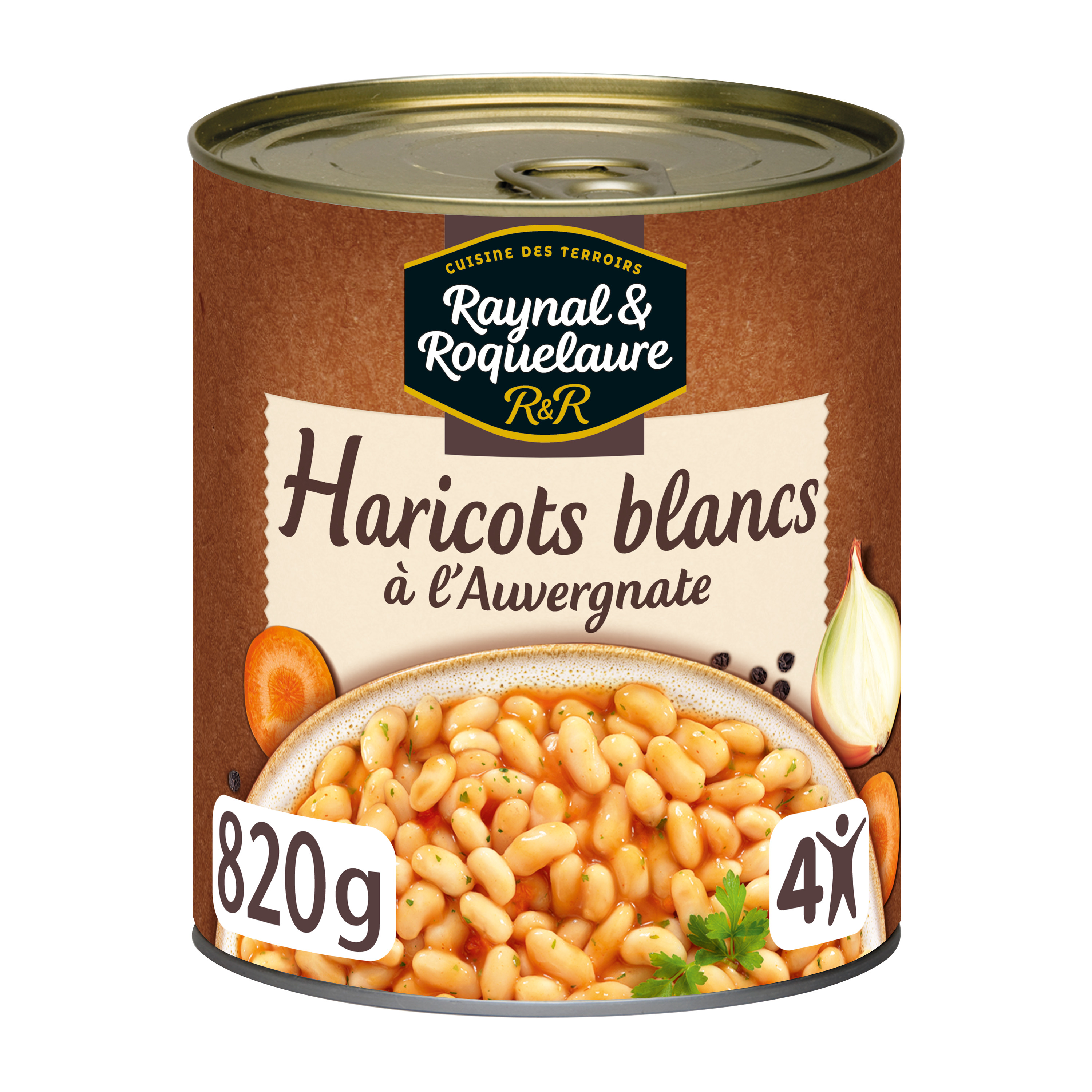 Eau, haricots blancs précuits 41%, oignons 5%, carottes 2%, graisse de canard, farine de BLE, sel, ail, concentré de tomates, persil, poivre, affermissant: chlorure de calcium. Traces éventuelles de : œuf, céleri, lait, moutarde
