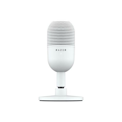 Le Razer Seiren V3 Mini White (réf. 153040, EAN 8887910000427) est un microphone USB plug-and-play conçu pour les streamers, gamers et créateurs de contenu. Son format miniaturisé s'intègre discrètement à tout setup, tout en offrant une qualité audio professionnelle grâce à sa capsule condenser 14 mm et son échantillonnage 24 bits/96 kHz.