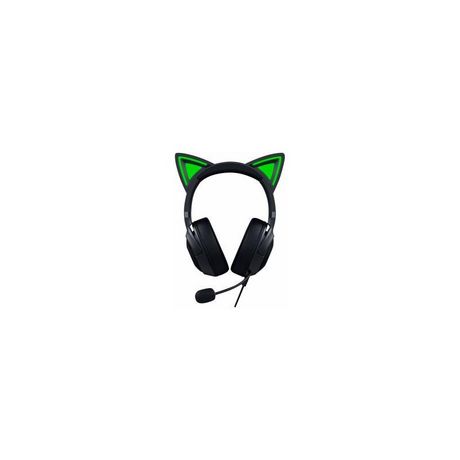 Le Razer Kraken Kitty V2 Black allie esthétique gaming et élégance féline avec ses oreilles de chat personnalisables et son revêtement noir sobre. Son design RGB Chroma™ offre une personnalisation lumineuse pour les streamers, tandis que sa structure légère et ergonomique assure un confort prolongé.