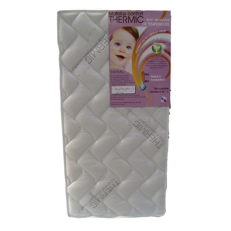 Le matelas bébé THERMIQUE 60x120 cm est idéal pour votre bébé ! Avec un coutil THERMIC breveté (capsules à base d'huile végétale intégrées), ce matelas permettra à votre bébé de dormir dans un espace idéalement climatisé. THERMIC capture donc la chaleur excédentaire, la stocke et la libère dès que le besoin s’en fait sentir. Il régule ainsi la chaleur et crée un climat de sommeil optimal compris entre 28 ° C et 30 ° C. Très pratique, ce matelas est entièrement déhoussable, lavable à 40°. Retrouvez d'autres matelas bébé sur le site Auchan.fr.