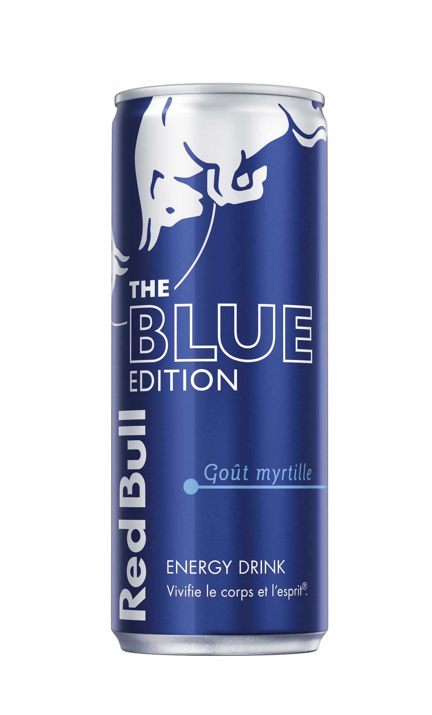 Red Bull, boisson énergisante, goût Myrtille, 250ml - La formule unique de Red Bull Blue Edition contient des ingrédients de haute qualité : caféine (0,03%), taurine (0,4%), vitamines du groupe B, sucres, eau. - Une canette de 250 ml de Red Bull Blue Edition contient 80 mg de caféine, soit à peu près la même quantité que dans une tasse de café maison. - La quantité de sucres dans une canette de Red Bull Blue Edition est comparable au niveau de sucres dans une quantité équivalente de jus de pomme ou d'orange - 11 g pour 100 ml. - Les canettes Red Bull sont fabriquées en aluminium 100 % recyclable. - Vivifie le corps et l'esprit.®