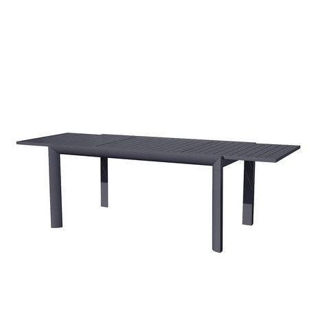 - CARACTÉRISTIQUES : coloris : gris,matière structure : aluminium traité époxy, nombre de place maximum : 8 places, haute résistance aux intempéries et aux UV, traitement anti-rouille, dimensions table sans rallonge : L160 x l90 cm x H75 cm, dimensions table avec rallonge : L240 x l90 cm x H75 cm, hauteur sous plateau : 75 cm, poids net : 25,5 Kg, nombre de colis : 1, dimensions colis : 166x95x18 cm, à monter soi-même, montage facile, notice incluse.