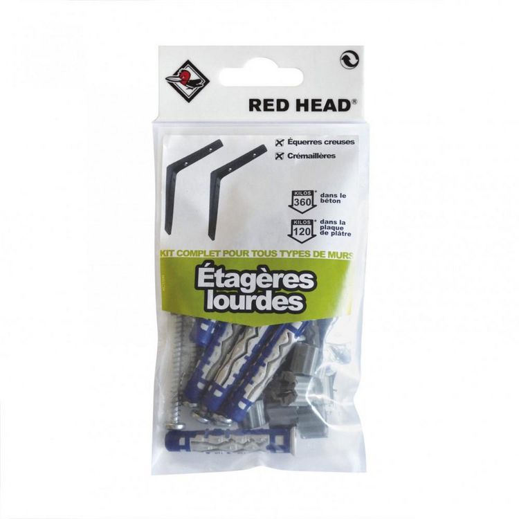 kit chevilles à verrouillage de forme etagère lourde RED HEAD, Diam.8 x L.50 mm
