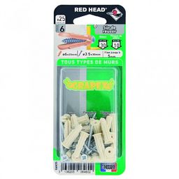 Lot de 25 cheville et vis RED HEAD, Diam.6 x L.25 mm