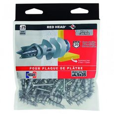 Lot de 25 chevilles et vis à visser vix RED HEAD, Diam.12 x L.30 mm