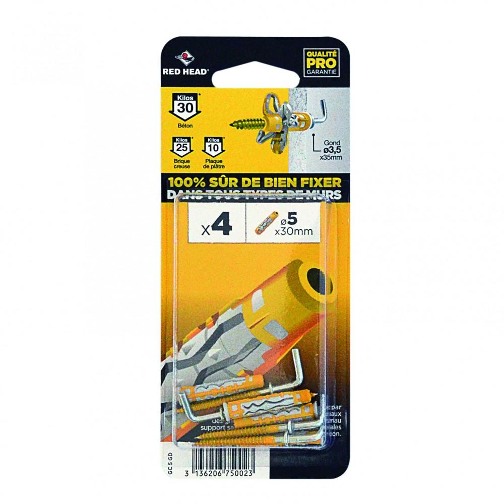 Lot de 4 chevilles et gonds couleur RED HEAD, Diam.5 mm x L.30 mm