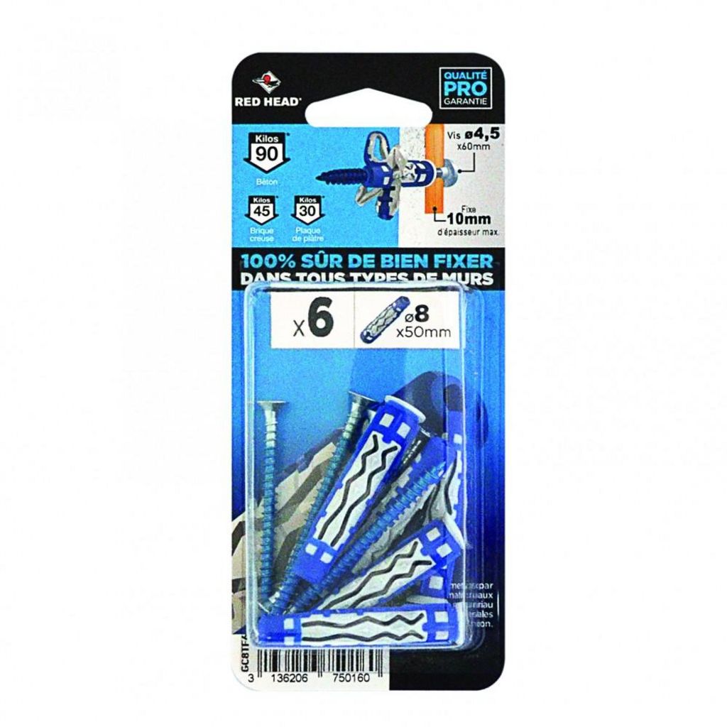 Lot de 6 chevilles et vis couleur RED HEAD, Diam.8 mm x L.50 mm