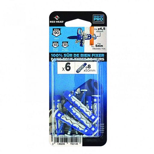 Lot de 6 chevilles et vis couleur RED HEAD, Diam.8 mm x L.50 mm