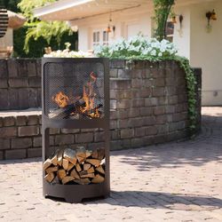Le foyer Buffalo de la marque RedFire est une combinaison de stockage de bois et de foyer. La magnifique grille en maille des deux cotes vous permet de voir clairement le feu de tous les cotes. De plus, ce gril offre une securite si le bois crepite ou eclate. Le foyer Buffalo est conçu avec un revet