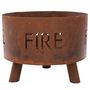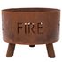 Le foyer est un grand panier (50 centimetres de diametre), ce qui vous permet de demarrer un grand feu en utilisant plusieurs buches. Vous pouvez voir les flammes a travers le lettrage perfore sur le cote, ce qui vous donnera un regard unique sur votre feu. L'acier de haute qualite durera plusieurs saisons et l'aspect rouille s'ameliorera et deviendra plus naturel avec le temps.