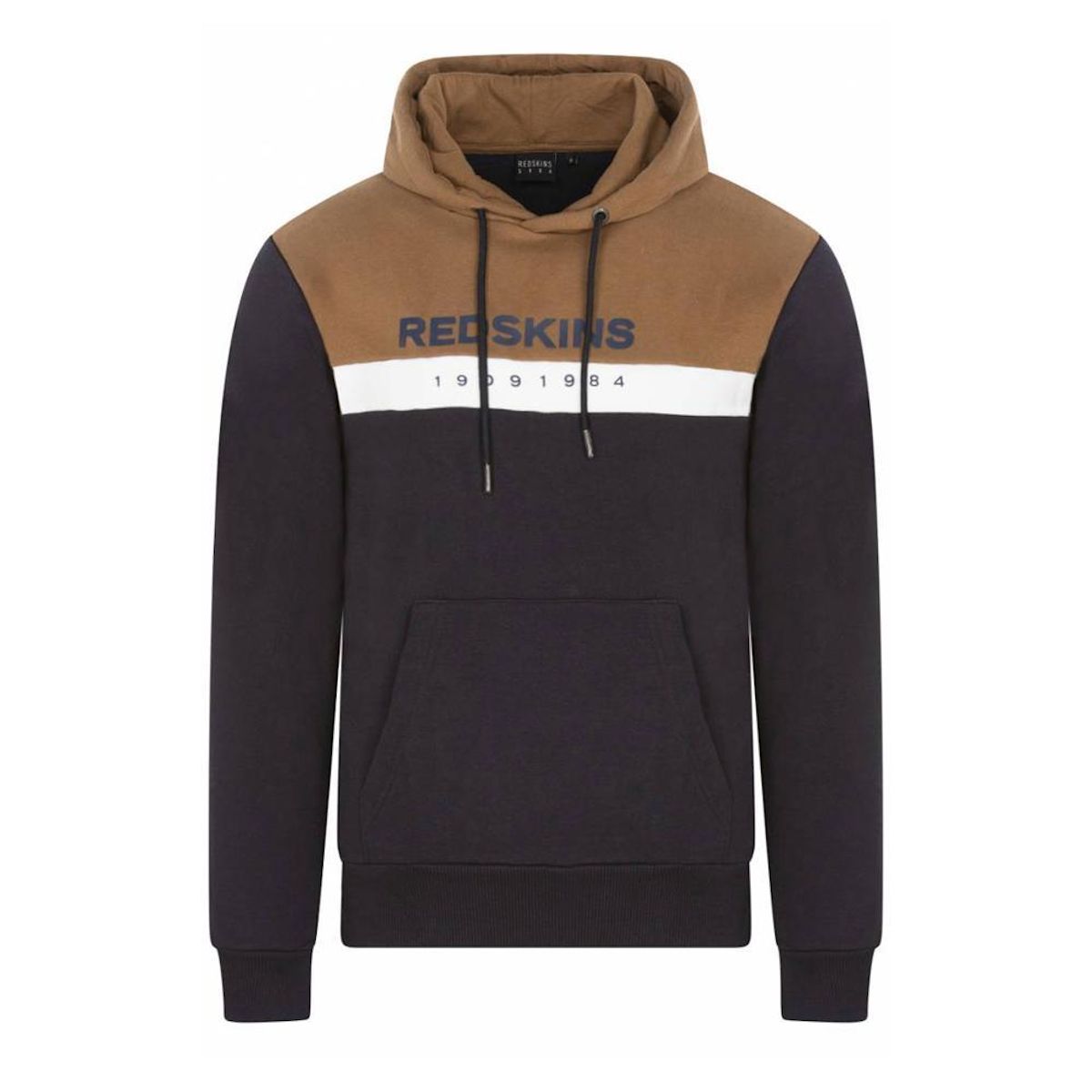 Découvrez le sweat de la marque REDSKINS !Coloris : Marron/Noir Col capuche Manches longues Poche kangourou Intérieur molletonné Logo brodé Composition : 100% Coton