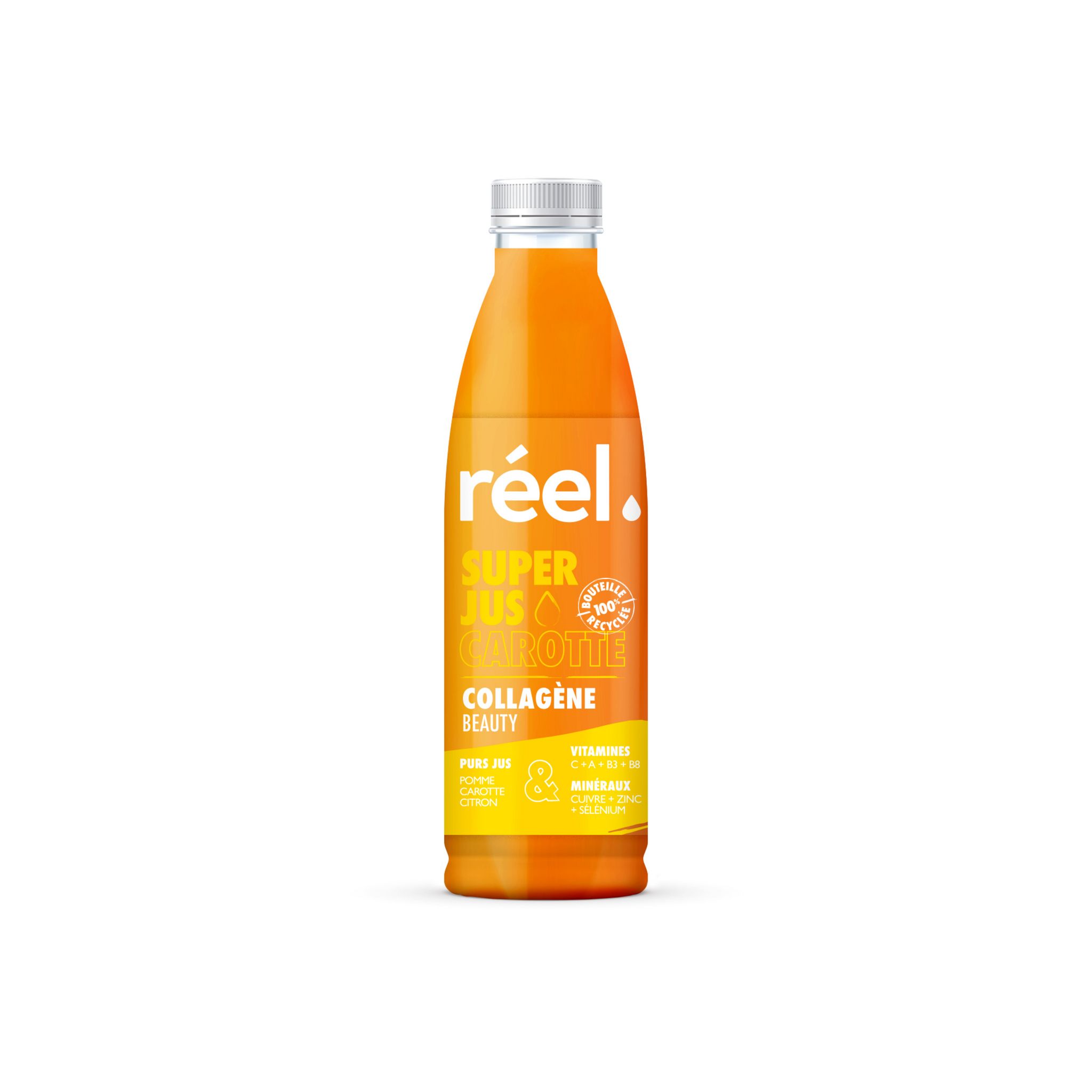 Jus de fruits enrichie en vitamines, minéraux et collagène marin.