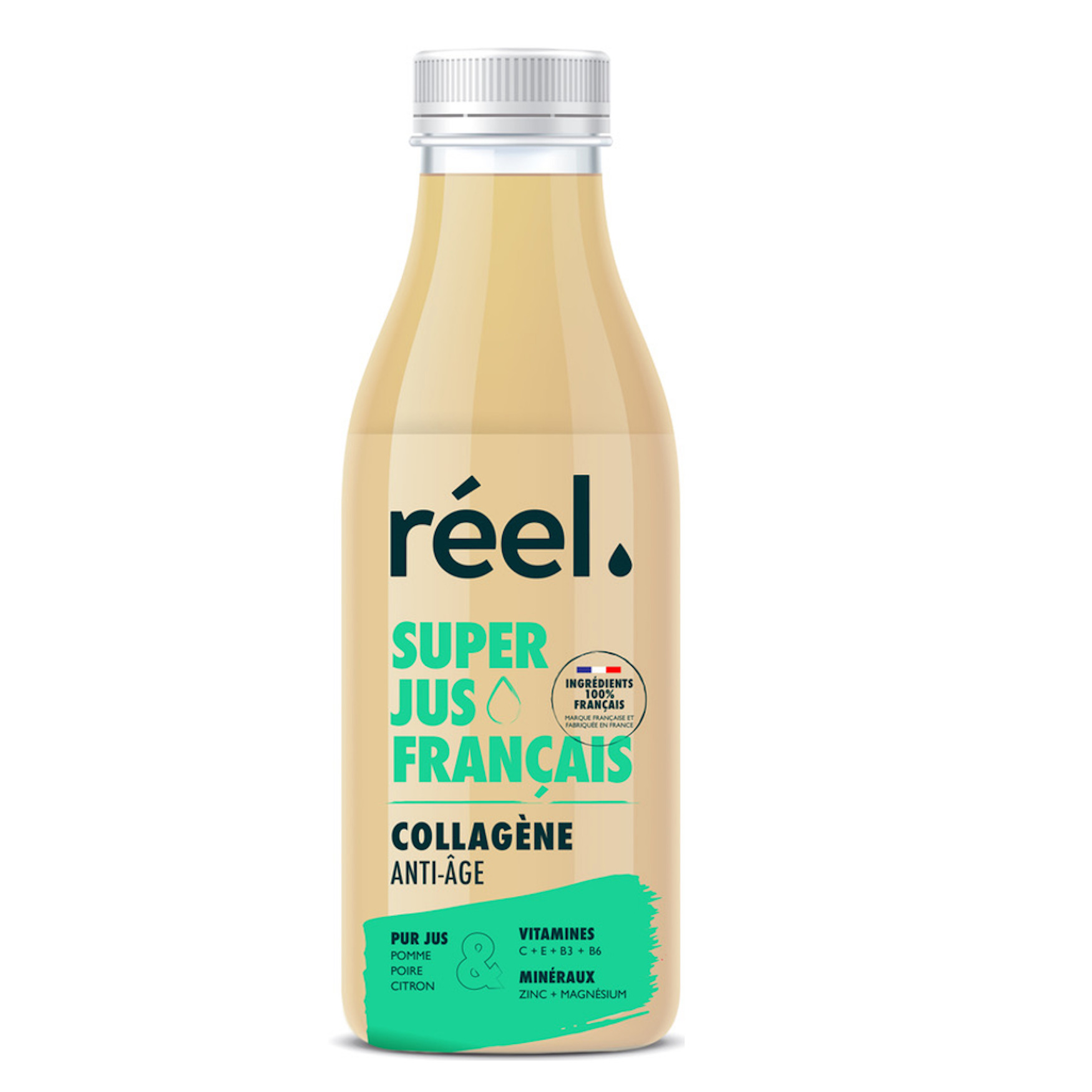 Jus de fruits enrichie en vitamines, minéraux et collagène marin.