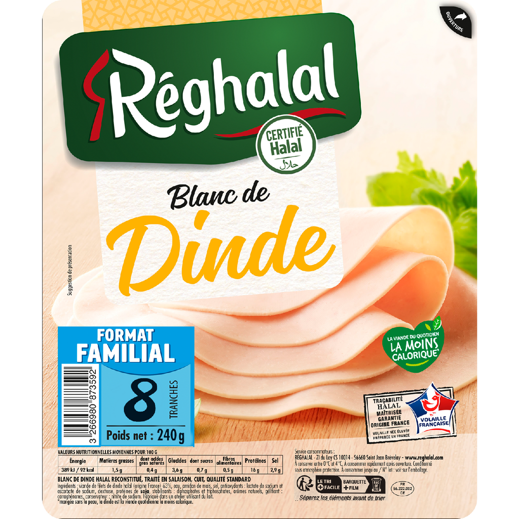 Un délicieux blanc de dinde halal à la texture moelleuse. Des tranches généreuses et savoureuses, pratiques pour cuisiner selon vos envies. Traçabilité halal maîtrisée. Garantie origine France : volaille née, élevée et préparée en France.